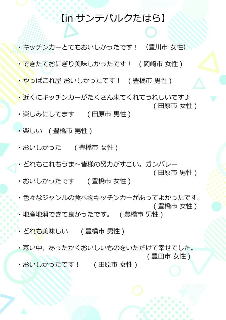 ⭐️皆様から頂いた「東三河だいすキッチンカーズ」へのご感想・応援メッセージをご紹介いたします⭐️