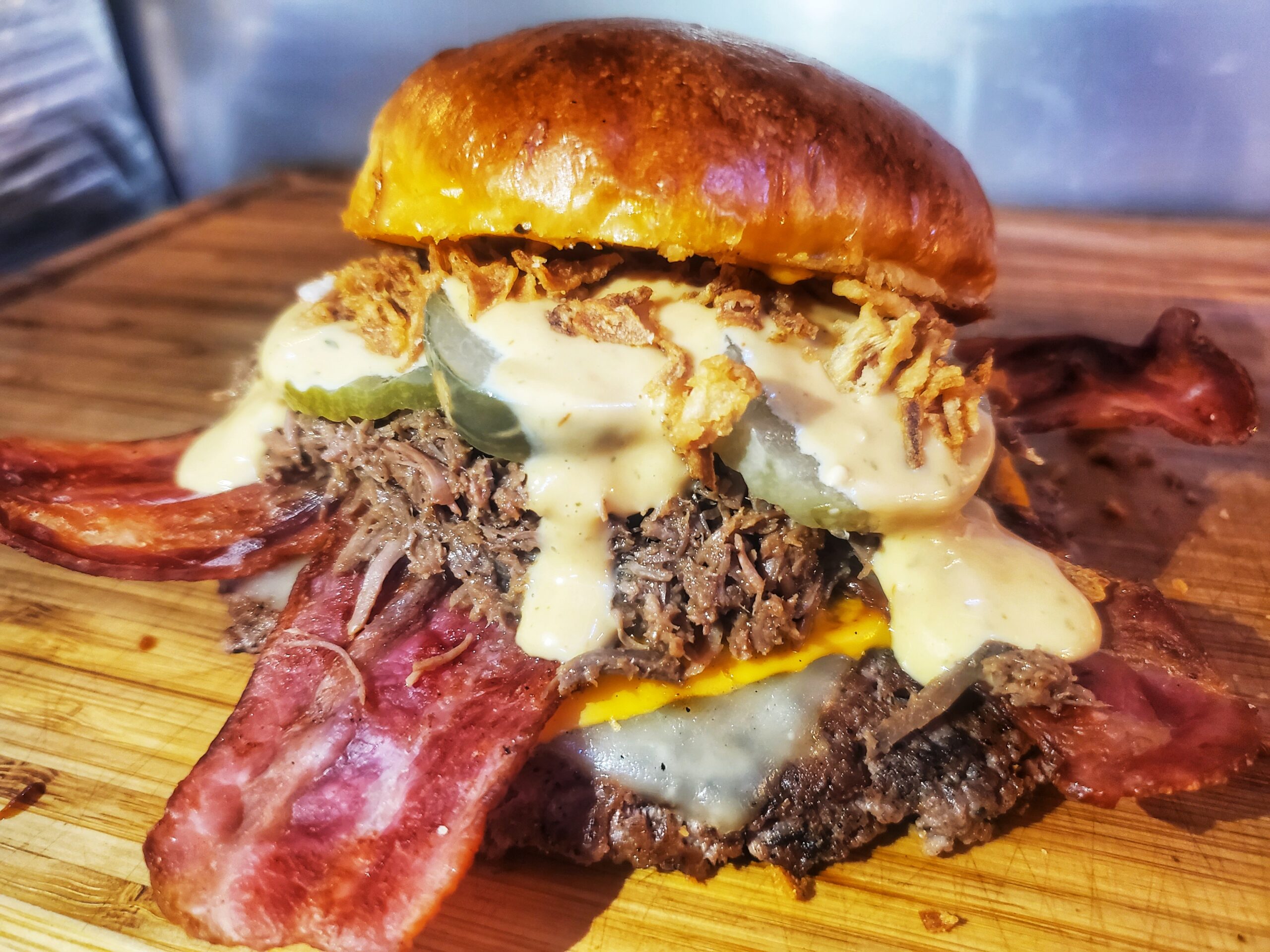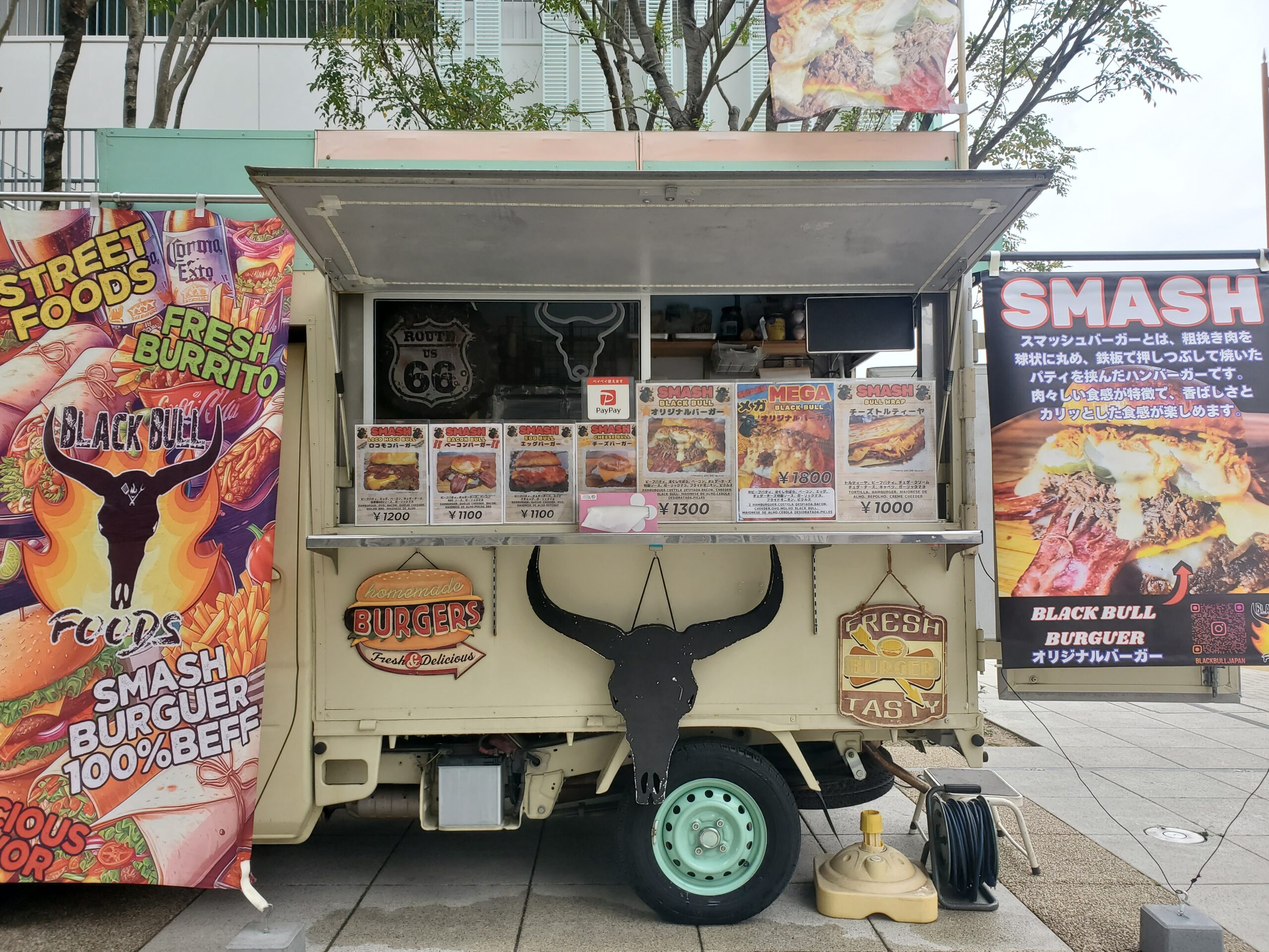 パン系肉系 Black Bull Foods 基本情報 屋号Black Bull Foods出店エリア豊橋市・豊川市・蒲郡市・田原市提供メニューハンバーガー、トルティーヤ、ナチョスなど スマッシュバーガー900円 トルティーヤ1000円 ナチョス600円