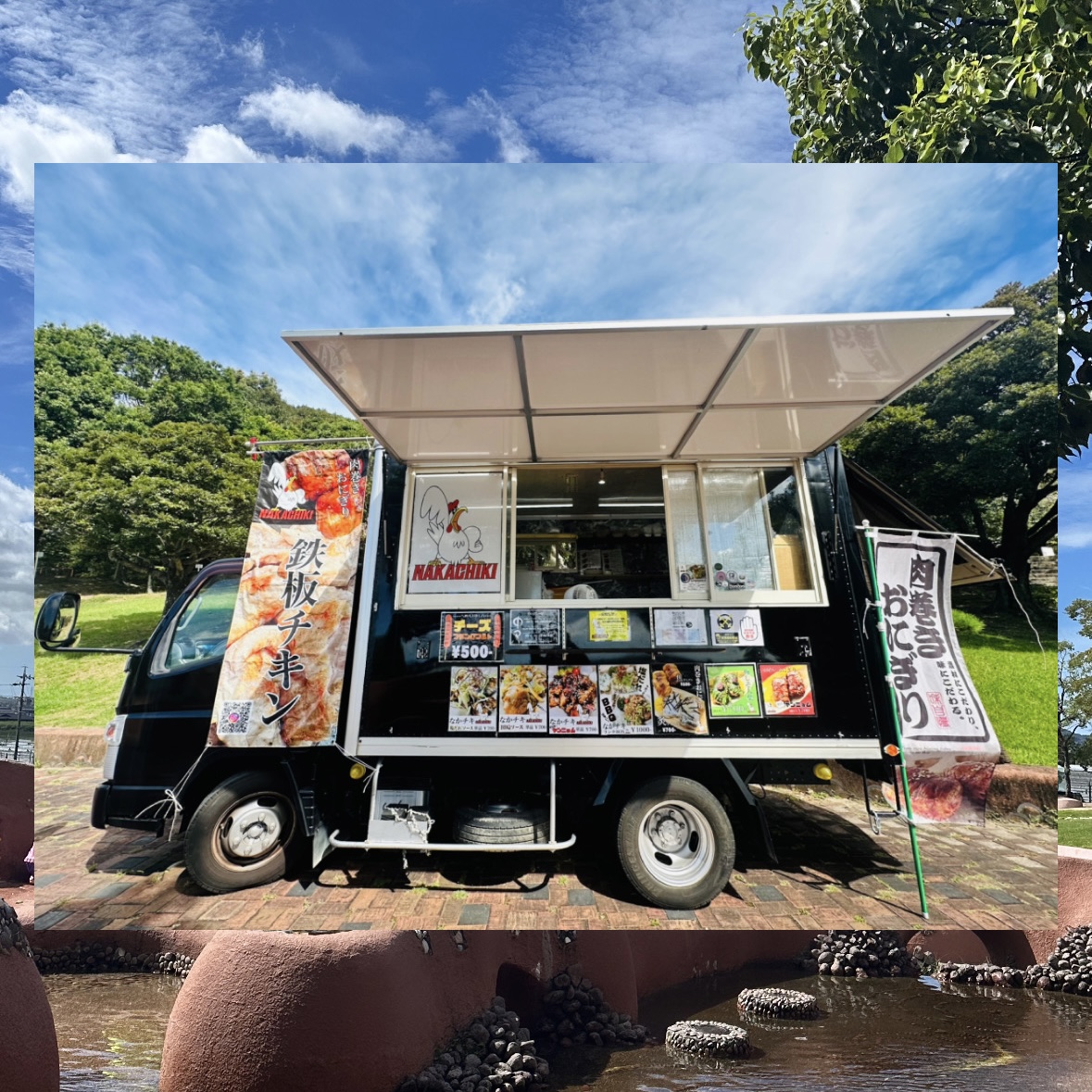 🐓鉄板チキン、肉巻きおにぎり🍖国産鶏とこだわりのタレを使用した鉄板チキン。中までタレが染み込んだ肉巻きおにぎり。こだわりの詰まった肉料理をキッチンカーでお届けします🚚豊橋うずらも使用しています!