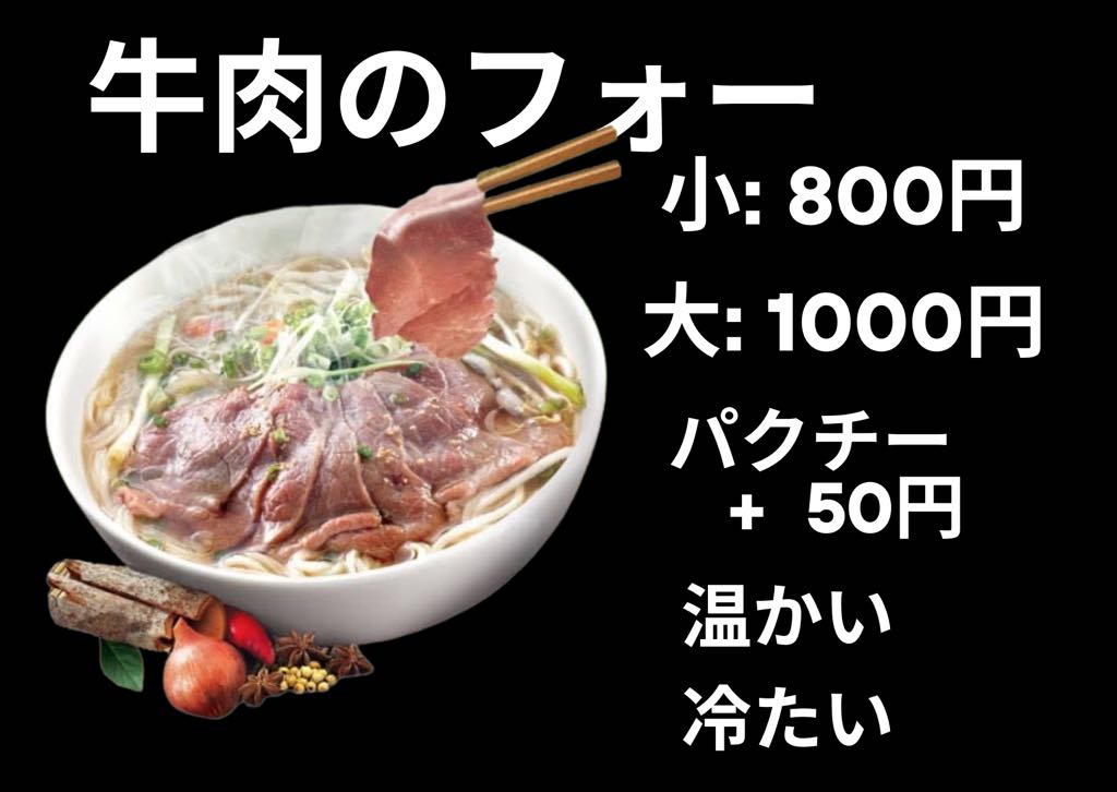 お米系肉系 フォーヒュエン 基本情報 ベトナムの料理です。フォーはラーメンです。米から作りました。 屋号フォーヒュエン出店エリア豊橋市・豊川市提供メニューフォー、揚げ春巻き、フランクなど Facebook Instagram 牛肉フォー800〜1000円 鶏フォー800円 揚げ春巻き1本:400 円 ココナッツ1本:500円 フランク1本:400円