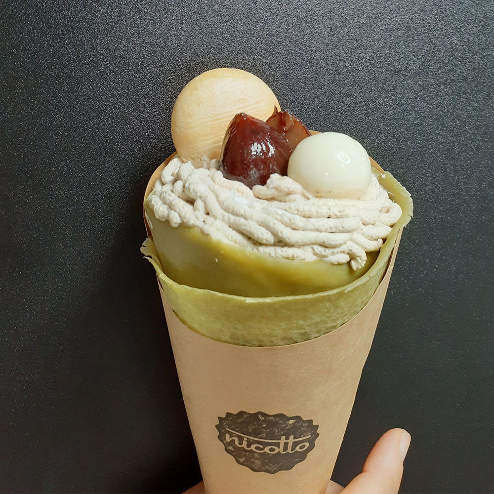 スイーツ系ドリンク系 nicotto(クレープ) 基本情報 静岡抹茶を練り込んだ米粉100%の完全グルテンフリークレープ生地です。和の食材を使用した老若男女に喜んでいただける優しい味の和風クレープ店です。 屋号nicotto(クレープ)出店エリア豊橋市・豊川市・蒲郡市提供メニュークレープなど Instagram 和栗クレープ700円 バニラアイスゆずあんこクレープ650円 白玉あんこクレープ620円 あんこバタークレープ480円 黒みつクリームクレープ400円